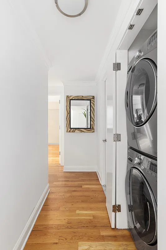 Другие преимущества этого просторного дома включают вторую полную ванную комнату, стиральную и сушильную машины бренда LG, дубовые паркетные полы, многочисленные большие шкафы и кнопку вызова лифта прямо в квартире.